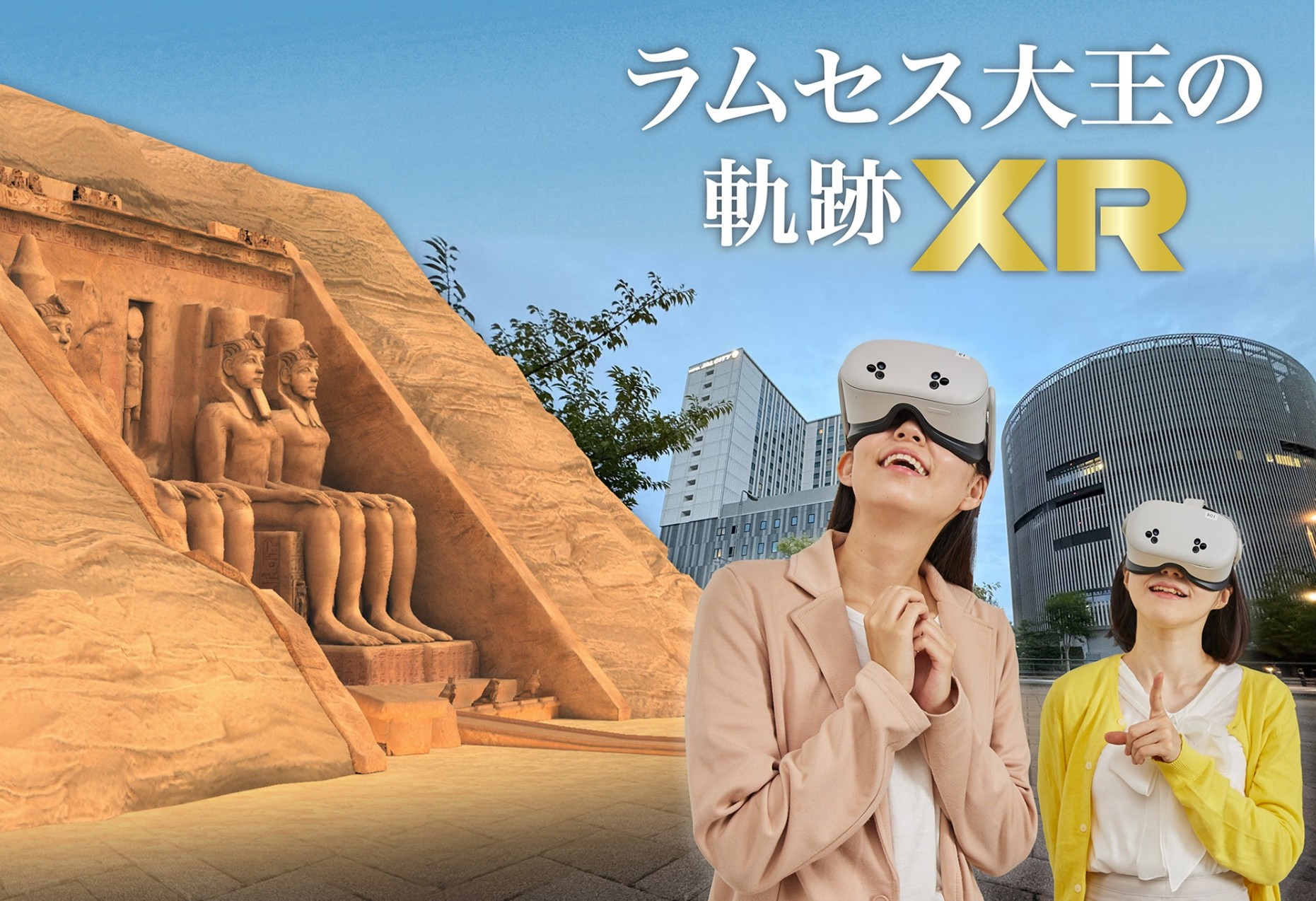 XR技術によって、スフィンクスやピラミッドなどの壮大な遺跡が目の前に出現します。