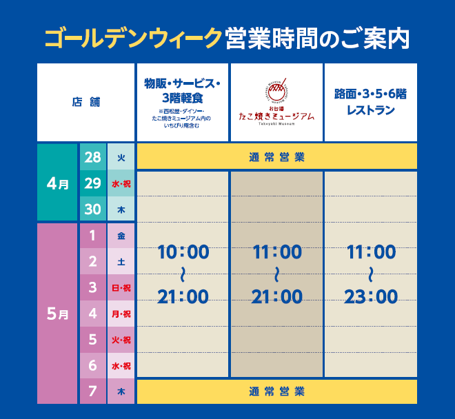 ※営業時間詳細につきましては、各店舗までお問合せください。