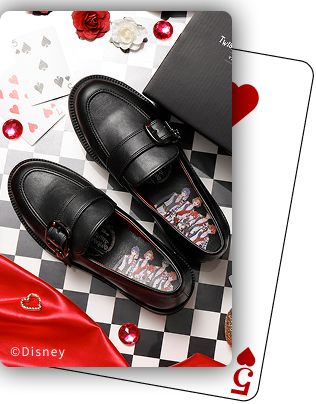 存在感抜群のバックルは、ハーツラビュル寮の紋章とストーン入り特注パーツを使用。高級感と個性を兼ね備えた、ここだけの特別仕様