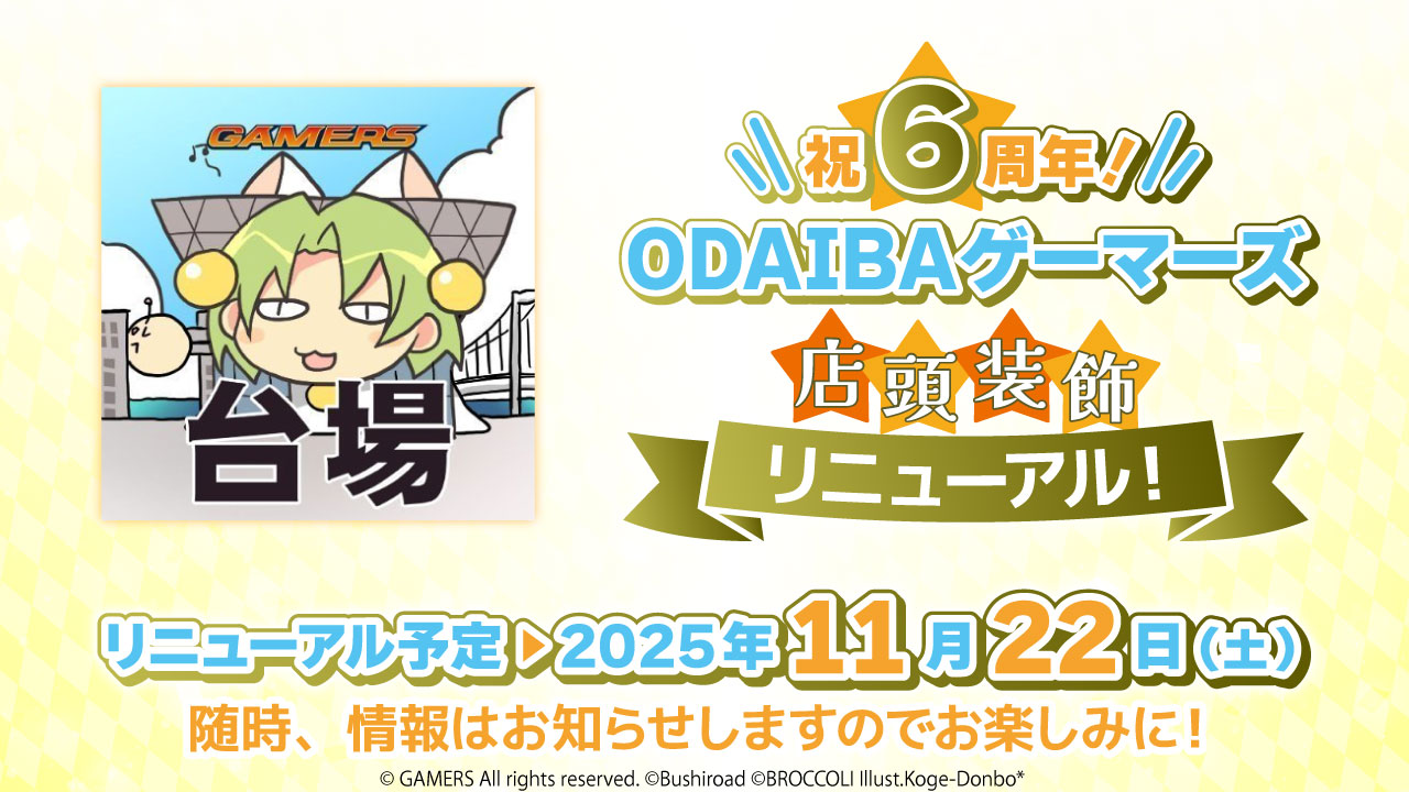 NEW 更新日:2025.11.10 ODAIBA ゲーマーズ 03-5962-4481 ODAIBAゲーマーズ店頭装飾リニューアル 実施日時 2025年11月22日(土) 延期をお知らせしておりましたODAIBAゲーマーズ の店頭装飾リニューアル日が決定しました 情報は随時お知らせいたします 今後もODAIBAゲーマーズをよろしくお願いします 関連リンクを見る X この店舗のショップニュース 現在、該当する情報はありません。